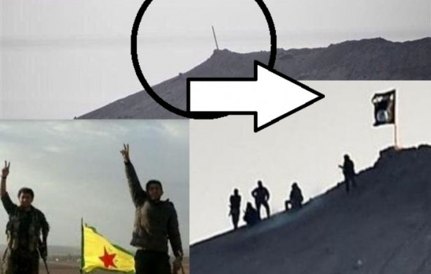 Μάλιστα οι τζιχαντιστές είχαν υψώσει και μια τεράστια μαύρη σημαία, να τη βλέπουν οι πολιορκημένοι αντάρτες του YPG να πέφτει το ηθικό τους αλλά και να μεταδίδεται από τα Μέσα όλου του πλανήτη.